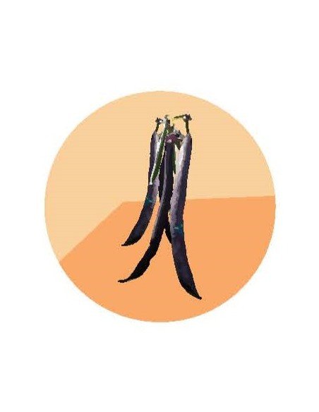 Variedad muy productiva de tamaño mediano en forma de mata. Sus flores púrpura se transforman en bellas chauchas color violeta amatista con porotos de color tostado en su interior. Las vainas, de 12-15 cm de largo , son de gran calidad y sabor. Se consumen tanto crudas como cocidas, y al cocinarlas se tornan verdes, tiernas y cremosas.